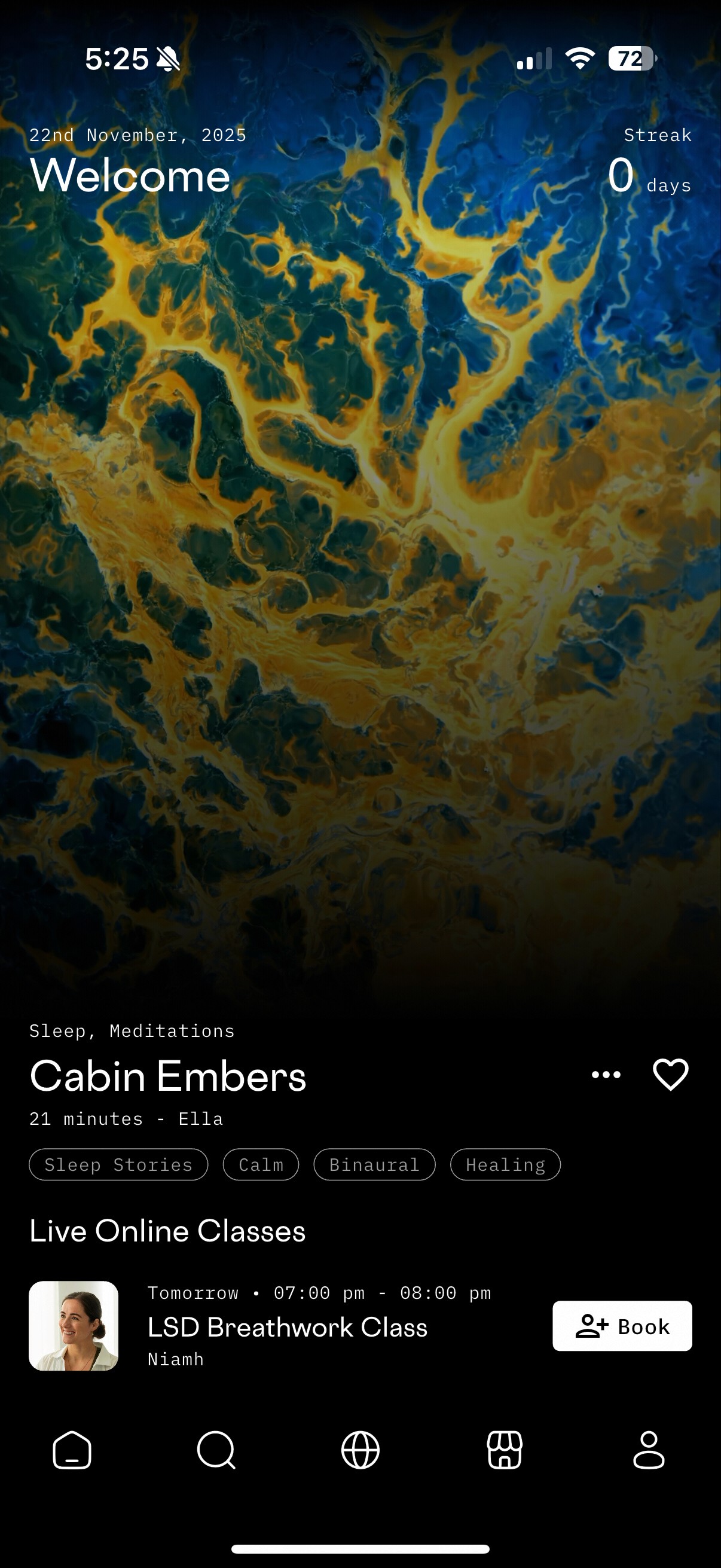Open the app and enter a guided session in seconds, straight into one of our signature practices like LSD, Release, or a daily reset.